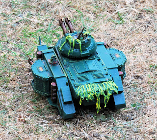 I picked up and old-style metal and plastic SM Predator on eBay and tarted it up as a a tank detroyer for my Nurgle army. I give you - Mortis, terror of the warp.